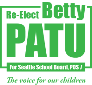I congratulate my longtime colleague and friend Betty Patu on her decisive re-election to the school board for a third term and an opportunity to complete her valuable decades of work on behalf of the students of Seattle Public Schools.